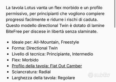 Vendo per inutilizzo tavola Salomon modello Lotus lunghezza 142 completa di attacchi Salomon tipo Spell misura M e sacca per trasporto