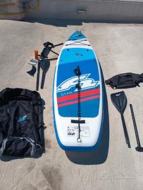 Vendo tavola da sup gonfiabile F2 Strato 10'5 una tavola da turismo può essere utilizzata da tutta la famiglia La confezione include: tavola, pompa, 2 paletta pinna, borsa, sedia e kit di riparazione. Specifiche di prodotto Dimensioni (cm)320 x 84 x 15 cm Dimensioni pollici10'5" x 33" x 6" Capacità di Carico: Progettata per paddler fino a 120-130 kg. Acquistata da appena 1 hanno e mezzo E regalo il carretto per il trasporto della tavola sulla sabbia Prezzo leggermente trattabile