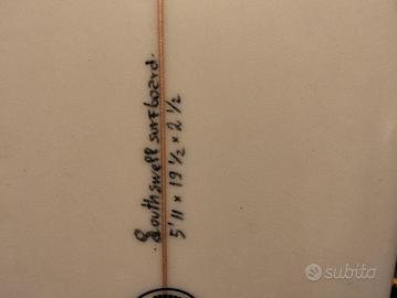 vendo tavola surf prodotta in Liguria da southswellsurfboard, misure in foto, tavola usata ma in buone condizioni, superficialmente in alcuni punti la resina è scheggiata ma non presenta riparazioni da fare.