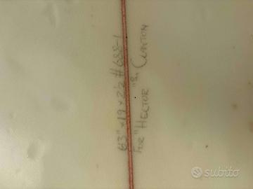 Vendo tavola da surf Clayton 6’3” – 29 litri, proveniente da Lanzarote. Tavola performante, ideale per chi cerca una buona via di mezzo tra maneggevolezza e divertimento in acqua. Ha sempre funzionato bene in diverse condizioni, soprattutto onde medio grandi, adatte ad un livello intermedio avanzato La tavola ha subito una riparazione importante sul Bottom (eseguita in modo solido da shaper Canario), che non compromette l’utilizzo in acqua. Presenta inoltre normali segni di usura dovuti all’utilizzo, niente di anomalo per una tavola usata. Perfetta come tavola da battaglia o per chi vuole spendere meno senza rinunciare a performance. Misure e dettagli visibili in foto. prezzo trattabile