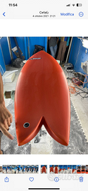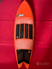 Fatta dallo shaper siciliano SKA ad ottobre 2021. In condizioni intonse, entrata in acqua 5 volte. Presenta degli sbrecci minuscoli (come tutti i fish purtroppo) sulle code, riparati dallo shaper. Incluso nella vendita front e tail pad nuovi nuovi (valore 110 eur). Pinne leash è calza esclusi.