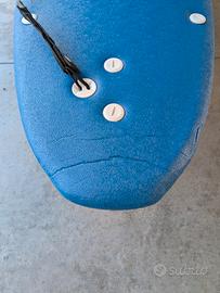 Vendo per inutilizzo tavola softboard Olaian 500, misura 8'6" (Shape Malibu). Ideale per principianti o per divertirsi con onde piccole in totale sicurezza. La tavola è stata utilizzata solo 3 o 4 volte ed è in condizioni ottime. Non è mai stata paraffinata, quindi il deck è perfettamente pulito e pronto all'uso. Presenta due leggere compressioni superficiali (su nose e tail) visibili in foto, dovute al normale trasporto. Sono segni puramente estetici che non compromettono assolutamente la struttura o l'utilizzo. Incluso nel prezzo: Set di 3 pinne morbide originali. 1 Pinna di ricambio originale Olaian NUOVA (con vite di scorta). Leash Olaian originale incluso. Disponibile per visione e ritiro a mano. Vista la dimensione della tavola, non effettuo spedizione.