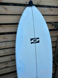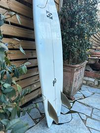 Tavola Surf ben tenuta. Adatta sia a principiante che ad appassionato ti tipologia di tavola a due pinne. Misure in foto Comprata circa nel 2016 Ha una riparazione visibile in foto (ha colore un pochino diverso) ma fatta da shaper professionista. Riparazione sia in poppa che lateralealto. Non spedisco