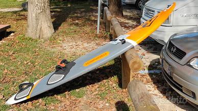 Tavola Jp FS riserigrafata da Windspirit e da mei poi acquistata, bella e leggera, ho aggiunto mount Gopro Muvi a prova di infilate nelle onde. Misure 234x61, circa 100 litri. Buone condizioni, solo due segni coperti da sassetti lago.