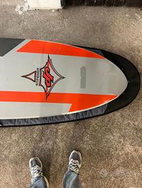jp supersport 127 litri versione pro edition, tavola da freeride. riparazione eseguita dal precendente proprietario e sotto il nastro adesivo è presente un piccolo bozzetto riparabile, grip buono. la tavola viene fornita con sacca pat love e la sua pinna. prezzo trattabile