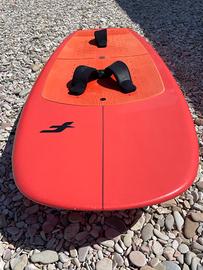 Tavola in ottime condizioni, super stabile, ideale per chi vuole progredire o cerca piu equilibrio nel mare agitato piccola riparazione da sistemare sul lato, non è entrata acqua poiché si è danneggiata a riva 75 litri strap originali f one