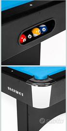 Vendo tavolo biliardo Nuovo mai utilizzato ancora nello scatolo originale. comprato da qualche mese. Possibilità di aggiunta di 2 stecche nuove e gessetti. Pagato io 850€