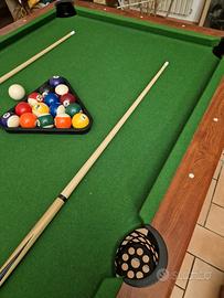 tavolo da biliardo in ottime condizioni e dotato ti tutte le sue componenti (palle e due stecche) 150 cm x 66 cm con un altezza 118 cm.