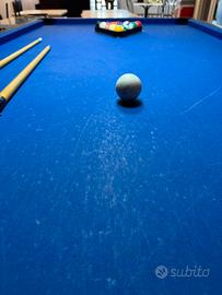 Vendo tavolo da biliardo in ottime condizioni, ideale sia per appassionati che per arredare una sala giochi, taverna o locale Compresi nel prezzo: [stecche, palline, triangolo.] Il tavolo è stato utilizzato regolarmente e presenta qualche normale segno di usura dovuto al tempo e all’utilizzo, ma è comunque in ottimo stato generale, perfettamente funzionante e pronto all’uso. Ritiro a mano a carico dell’acquirente, visto il peso e l’ingombro. Possibilità di visionarlo prima dell’acquisto. No perditempo, solo realmente interessati.