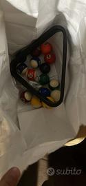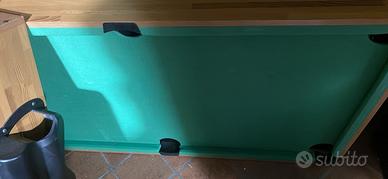 -tavolo da biliardo piccolo con stecche, palle e gambe in perfette condizioni