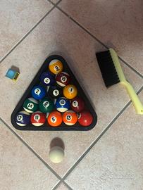 tavolo da biliardo pieghevole di dimensioni: 120x61 cm e altezza 73cm. facile da aprire e richiudere, una volta chiuso occupa solo di spessore 10cm. provvisto di 2 stecche, palline, spazzolino e gesso per stecche. una stecca è leggermente danneggiata e anche leggermente scheggiato un lato del tavolo.