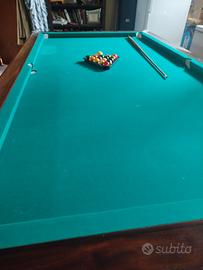 Usato ma ben conservato. Completo, con 4 stecche e apposito porta stecche. Il tappeto presenta tre piccoli fori e qualche macchia, eventualmente da rifare. Prezzo trattabile.