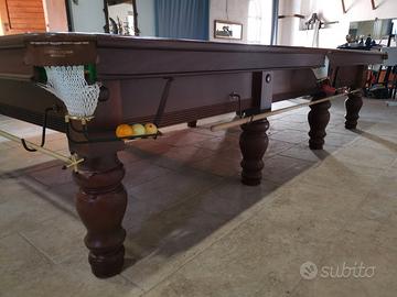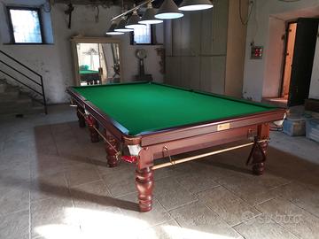 Vendo tavolo da snooker modello "THE ROYAL WINDSOR" prodotto dalla rinomata KARNEHM & HILLMAN LTD, ideale per appassionati o sale biliardo. Le misure sono regolamentari 12 ft (circa 366 cm x183 cm). E' in ottime condizioni, perfettamente in piano, il panno è Strachan verde classico.