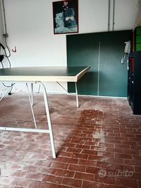 Tavolo da ping pong da interno, misure regolamentari, si divide in due parti da 153x137 cm, ha le gambe pieghevoli.