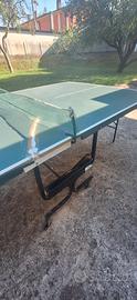 Vendo tavolo da ping pong richiudibile; come si vede dalle foto la struttura ha un difetto causa riparazione dopo rottura dell'angolo interno di uno dei due lati