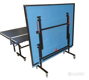 Tavolo da ping pong professionale, facile da chiudere e rapido da sistemare, comodissimo da spostare grazie alle 8 ruote. Sollevando uno dei due piani, è anche possibile giocare da soli.