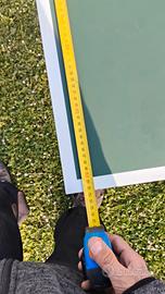 vendo per inutilizzo tavolo ping pong pieghevole da esterno,misura standard regolamentare Lunghezza: 274 cm. Larghezza: 152,5 cm. Altezza: 76 cm, piedini regolabili in altezza. comprese 6 racchette e palline. prezzo leggermente trattabile SOLO dopo visione. NON SPEDISCO