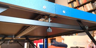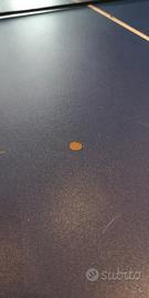 Tavolo ping pong pieghevole, piedini regolabili, non ha le misure regolamentari ma non è nemmeno un giocattolo, e permette di giocare anche in spazi ristretti. Aperto misura: larghezza 101, lunghezza 183, altezza 90. Chiuso diventa come le 2 valigette in foto, e misurano in totale: larghezza 92, altezza 47, profondità 15. Ha solo l'imperfezione in foto, facilmente riparabile, per il resto è stato usato veramente poche volte. Non è un tavolo professionale, ovviamente, visto anche il prezzo, ma è un buon compromesso tra giocabilità, costo e dimensioni, senza occupare troppo spazio una volta messo via. Tempo per allestirlo circa 15 minuti. Valuto offerte.