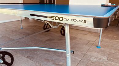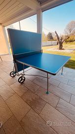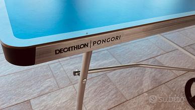 Vendo tavolo da esterno Decathlon Pongori PPT 500.2 outdoor blu nuovo mai usato. Presenta solo un piccolo diffetto sul piano visibile nella foto 6 allegata Peso del tavolo da solo: 50 kg. Dimensioni aperto: 274 x 169 x 76 cm (esclusa rete) (L x | x H). Dimensioni dei piani: 274 x 152.5 cm (taglia ufficiale). Dimensioni chiuso: 73 x 169 x 167cm Ogni piano è provvisto di 4 punti di blocco automatici che permettono di tenere bloccato il tavolo in posizione aperta o chiusa. blocchi di sicurezza permettono d loccare e sbloccare rapidamente piani. Si può anche chiudere un piano solo per poter giocare da soli. Questo tavolo ha 4 gambe con diametro di 30mm, regolabili in altezza (45 mm) per adattarsi a tutti i terreni. Telaio perimetrale in acciaio galvanizzato 35 × 15mm. Le 4 grandi ruote di 25cm e la struttura rinforzata permettono di spostare facilmente il tavolo su qualunque terreno, anche molto irregolare. Resistenza alle intemperie I piani in melammina e la struttura in metallo con trattamento anticorrosione permettono di lasciarlo sia all'interno sia all'esterno.