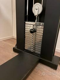 Consente di allenare tutto il corpo: chest press, lat machine, rowing, pectoral fly, bicipiti, tricipiti, addominali, leg extension, leg curl e altri esercizi ai cavi.