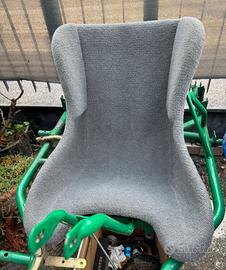 Sedile rivestito in tessuto, con “paracostole” laterali imbottiti.