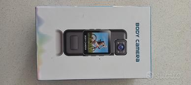 telecamera sport FHD obbiettivo rotabile di 180 gradi. Durata batteria 7 ore supporta scheda SD non inclusa.