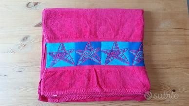Bellissimo Telo Mare con fantasia marina Nuovo! Mai usato Colore: Rosa e Blu 100% Cotone Misure: 160 x 80 cm