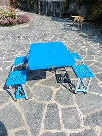 Comodo tavolo da Picnik con sedie riposto in valigia