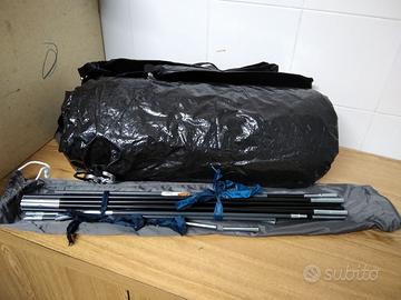 Una tenda da 3 persone. Usata mah in buone condizioni. Tutti i pezzi inclusi tranne i picchetti (che possono essere facilmente acquistati da Decathalon). Istruzioni incluse ma in inglese.