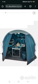 Soggiorno di 5 m², altezza della tenda di 1,90 m. Questa tenda ha un pavimento rialzato all'ingresso in caso di pioggia e una finestra trasparente con falda. La stanza di questa tenda è progettata per ospitare un massimo di quattro materassi larghi 60 cm. Può anche ospitare una coppia in cerca di una stanza molto grande.