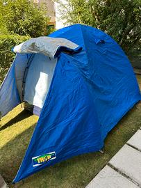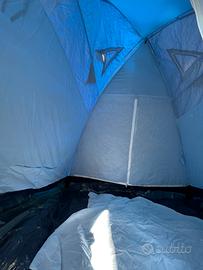 Tenda tenuta in ottimo stato. Cerniere e bacchette perfettamente funzionanti. 2 ingressi, con telo divisione camere. Altezza interna 175 cm, 220x220 cm, con piccola veranda. Completa di tutti i suoi picchetti e corde di tiraggio. Peso 6,5 kg.