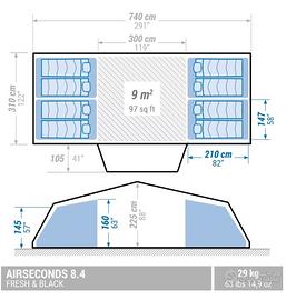 vendo tenda gonfiabile completa di pompa e prolunga della quechua per fare il gazebo più pompa per il gonfiaggio,la vendo solo perché ormai è troppo grande,ormai siamo rimasti in 3