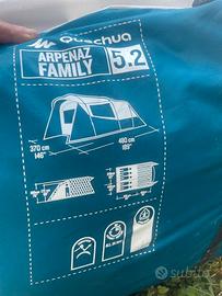 Tenda Arpenaz Family 5,2; 2 camere , 5 posti letto, ampia veranda, altezza da 172 a 190 cm. Utilizzata una volta