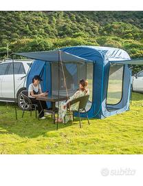Tenda automatica veloce ad aprirsi e chiudere utilizzabile come seconda camera o cucinino in campeggio o per portellone posteriore auto con grande estensione posteriore, rivestimento di protezione UV, impermeabile,ideale per campeggio . Usato una volta soltanto, ha il suo pavimento incorporata e una volta chiuso non occupa molto spazio
