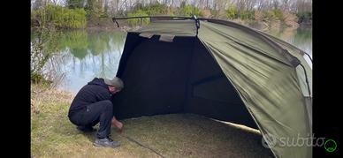 Tenda xl molto spaziosa ci sta di tutto. Finestre con zanzariere, picchetti e pali davanti. Borsa