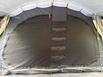 Interno: polyestere 190T âpongee lightâ traspirante, tasche portaoggetti, sistema porta lampada, tendine oscuranti, finestra Kristal, separè removibile
