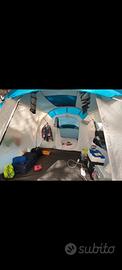 Tenda da campeggio di circa 10 anni ma in ottime condizioni. Usata in tutto 5 volte e con le massime accortezze. Ha tutti I pezzi originali, compresi i tiranti e gli archi. Telo esterno intatto senza difetti.