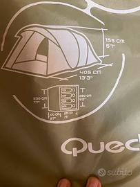 Vendo tenda da campeggio Quechua per 4 persone ampia comoda e facile da montare e richiudere… ci sono i video su YouTube..usata una volta per 2 notti.. praticamente nuova… con picchetti nuovi, regalo lampada trasportabile da tenere all’interno.