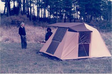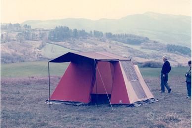 Tenda campeggio a casetta Roller 4 posti in cotone di ottima qualità, sembra appena uscita dal negozio. Usata solo 4 settimane e poi sempre rimasta chiusa nei propri sacchi. Completa di paleria nella propria scatola. Le foto dell'interno sono di altra tenda ma dello stesso tipo e marca per dare un'idea dell'interno.