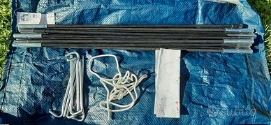 tenda usata da campeggio. usata per far giocare mia figlia in casa; portata all'esterno per mostrarla. usata poco. con istruzioni e completa di tutti gli elementi per il montaggio