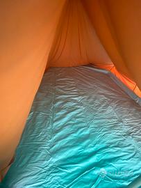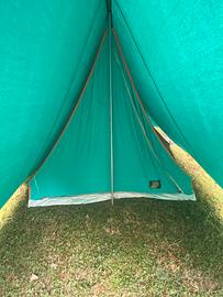 Tenda da campeggio tipo canadese di colore verde in ottimo stato completa di tubi e picchetti per 4 persone. Leggermente trattabile
