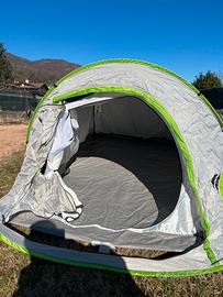 Ideata per 2 persone in campeggio itinerante, che cercano una tenda dall'installazione istantanea, spazio e una ventilazione regolabile. 2 grandi posti + spazio di contenimento.