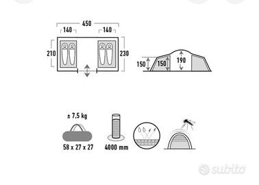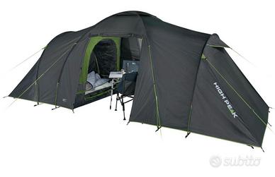 Marca High Peak modello Como 4 con 4 posti letto in due camere separate. Usata una sola volta: come nuova. In foto sia tenda montata che foto da catalogo.