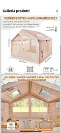 Vendo SOLO DA VICINO NO SPEDIZIONE per errato doppio acquisto questa fantastica tenda gonfiabile da campeggio dai sei agli otto posti con gonfiato incluso e con possibilità di mettere camino interno ha già l’apertura apposita. La tenda è nuova imballata ancora nel cartone si valuta ESCLUSIVAMENTE vendita ravvicinata zona Caserta Napoli no spedizione e prezzo trattabile per informazioni SOLO CHAT SUBITO .