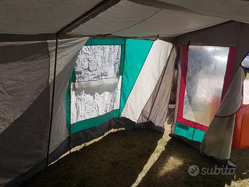 Vendo tenda da campeggio usata 4 5 posti con.ver. al proprio interno ha 2 tende da 2 posti l'una e una grande veranda interna.