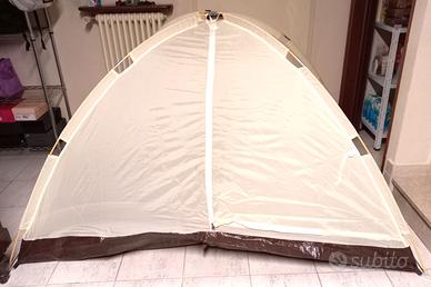 Tenda da campeggio igloo 2 posti, pratica e resistente, usata pochissimo e tenuta con cura. Ideale per campeggio estivo, festival o weekend all’avventura. Dimensioni 200x140 cm. 👉 Doppia apertura con cerniere (anteriore e posteriore) per maggiore comodità e ventilazione. Telo esterno impermeabile color argento con cappuccio protettivo. 👉 Struttura a doppio telo: camera interna traspirante + copertura esterna impermeabile per protezione da umidità e pioggia. 👉 Montaggio rapido: pali in vetroresina, pronta in meno di 10 minuti. 👉 Dettagli utili: fondo rinforzato isolante, porta con zanzariera interna. 👉 Condizioni: pulita, completa e senza strappi. Perfetta per 2 persone con bagagli. Facilissima da trasportare. Ideale anche per principianti. Vendo per inutilizzo. CONDIZIONI: visto e piaciuto come in foto.