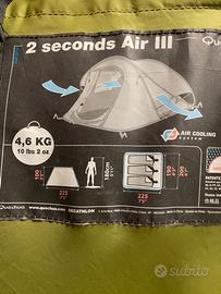 Tenda campeggio per 3 persone max 1,90. Mai usata, completa di tutto. Ad apertura rapida.