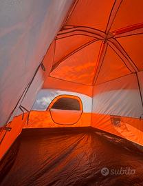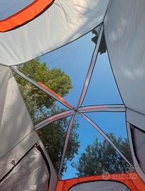 Vendo bellissima tenda da campeggio familiare, spaziosa e luminosa, nuova e mai usata. La tenda è realizzata in un tessuto tecnico leggero di alta qualità, ideale per chi cerca una soluzione facile da trasportare senza rinunciare alla resistenza. Grazie alla sua struttura intelligente, offre un'abitabilità eccezionale con un'altezza interna che permette di stare comodamente in piedi. È carina e ideale per le tue giornate di sole. Caratteristiche principali: Design panoramico: La parte superiore è dotata di ampie sezioni in rete che permettono di guardare le stelle di notte e garantiscono un ricircolo dell'aria perfetto 360^, per evitare la condenza Veranda inclusa: Dispone di un pratico tendalino esterno supportato da pali, perfetto per creare una zona d'ombra all'ingresso dove rilassarsi o cucinare. Protezione totale: Include una copertura superiore (flysheet) color sabbia per proteggere dal sole e dalla pioggia leggera. Interni spaziosi: Pavimento integrato robusto e finestre laterali con zip per la massima privacy. Specifiche tecniche:Stato: Oggetto nuovo, mai montato sul campo (montato solo per esposizione/foto).Materiale: Poliestere leggero traspirante.Colore: Arancione, bianco e grigio.Capacità: Ideale per un massimo di tre persone. Perfetta per vacanze estive in famiglia o weekend con gli amici. La tenda è pronta all'uso e completa di tutti gli accessori (pali, picchetti e sacca per il trasporto). Prezzo leggermente trattabile e spedizione da concordare. Non perdere l'occasione di assicurarti una tenda nuova a un prezzo vantaggioso!