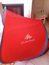 tenda ideale per la spiaggia, si monta da sola velocemente ed è facile da smontare, sono inclusi 3 picchetti. Presenta come unica imperfezione un bastoncino interno della tenda spezzato, si nota dalla deformazione nella parte posteriore, ma è stato aggiustato e riattaccato, la tenda è praticamente nuova e quasi mai usata.