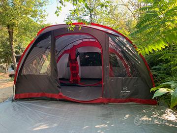 É una bella e comoda tenda, tutto acquistato nuovo. Con 3 stanze separate è ideale per genitori e 2 figli ed anche se piove si può cucinare a pranzare all'interno con molto spazio.